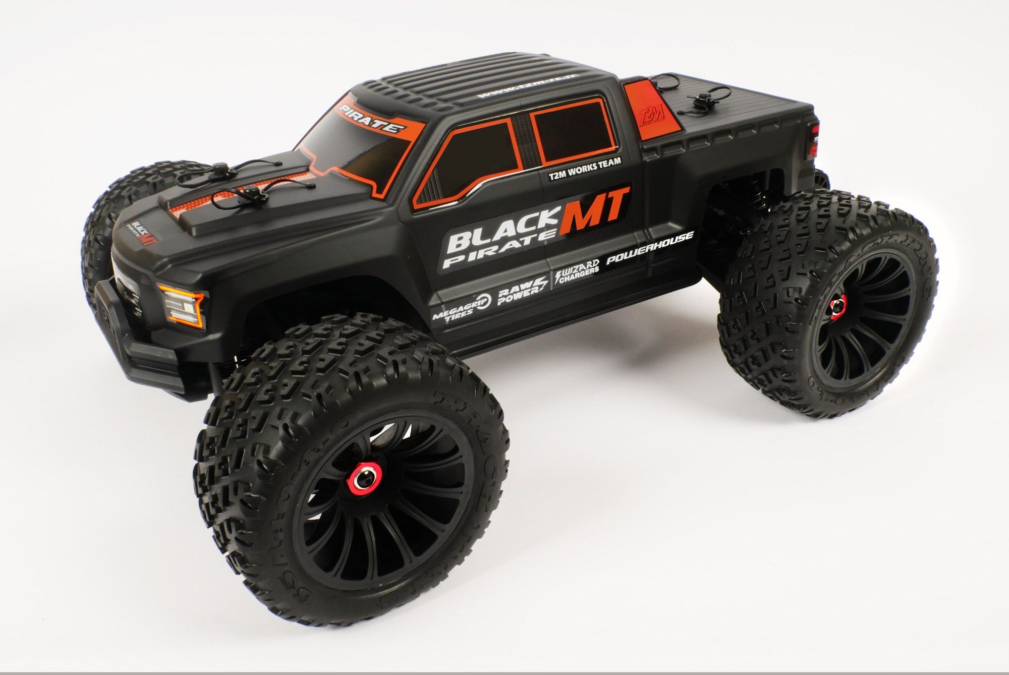 Der Black Pirate MT ist ein leistungsstarker, zuverlässiger und robuster RC Elektro Monster Truck. Die hochwertige und reichhaltige Serienausstattung läßt kaum Wünsche mehr offen: Brushless Motor, Chassis aus Komposit, voll kugelgelagerter Allradantrieb über 3 Differentiale, großvolumige Öldruckstoßdämpfer, Wettbewerbs- Off Road Reifen.