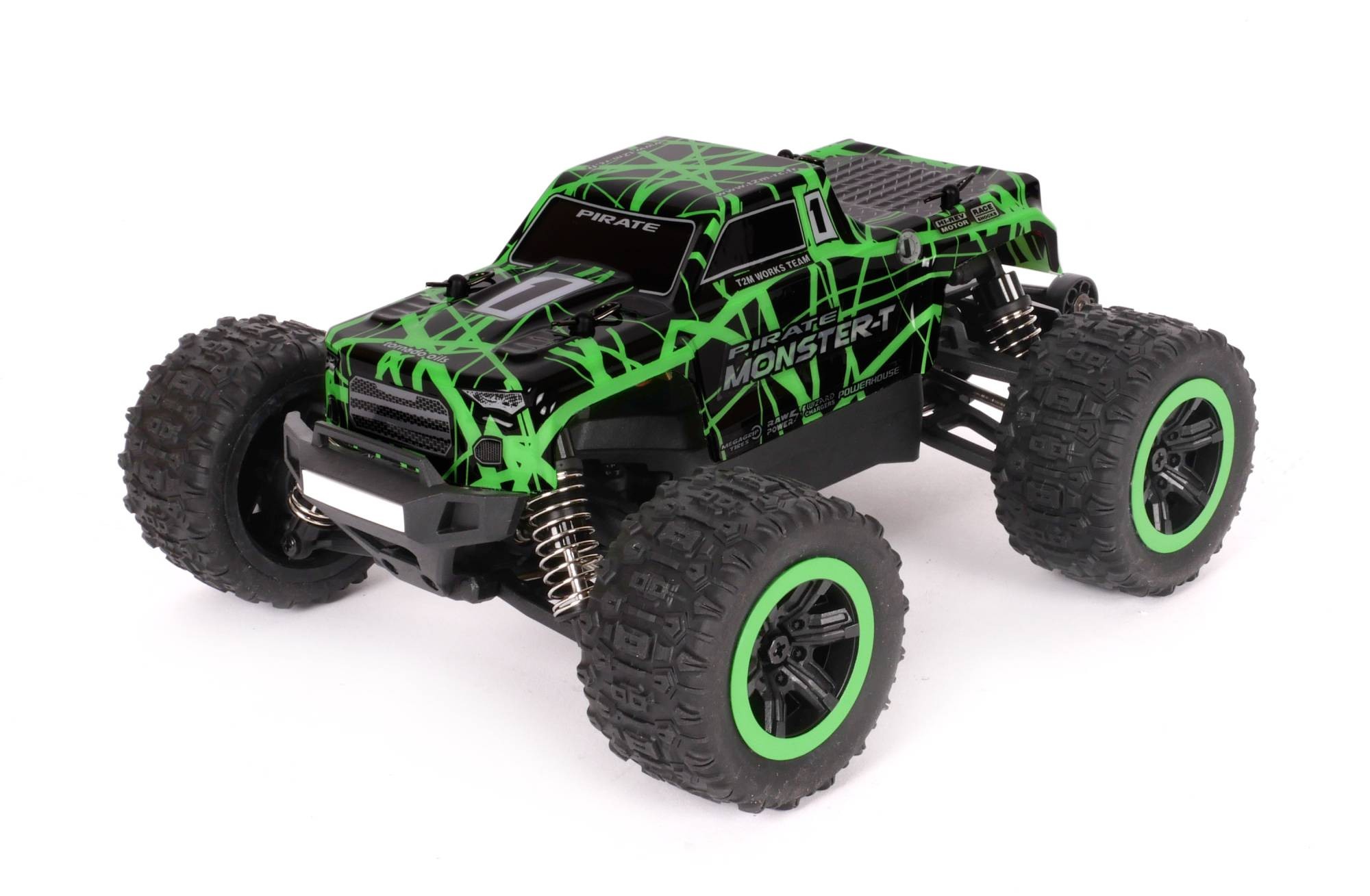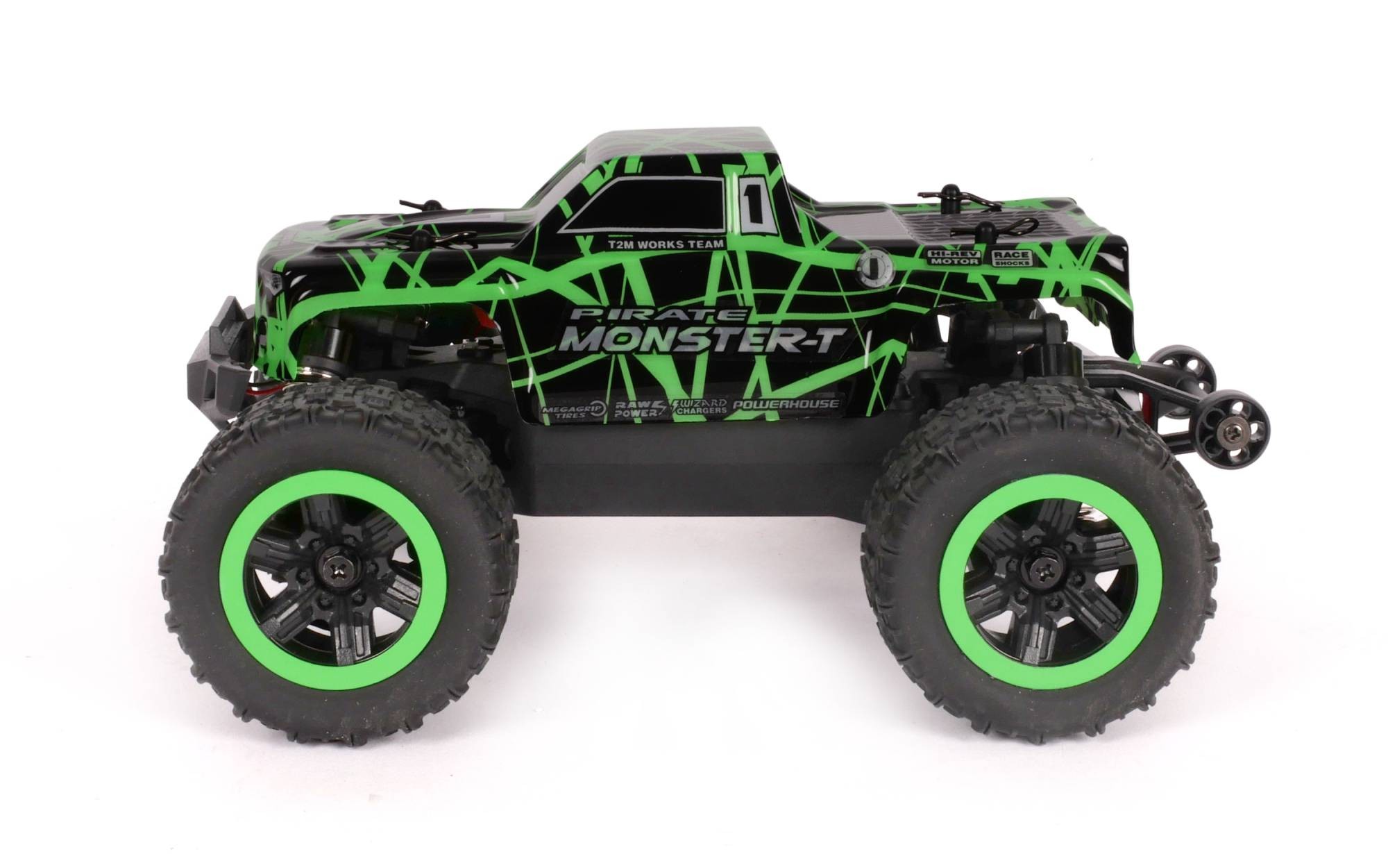 Dieses vollständig vormontierte Modell im Maßstab 1:18 mit Allradantrieb und zwei Differentialen ist mit einem Brushless Motor ausgestattet.Dank seines robusten Fahrwerks, seiner bewährten Konstruktion, seiner hydraulischen Stoßdämpfer und seiner vielseitigen Reifen für verschiedene Untergründe kann der Pirate Monster-T problemlos mit hoher Geschwindigkeit fahren.